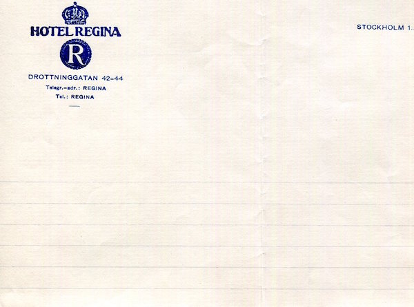 Sweden Stockholm Hotel Regina Luggage Label 1934