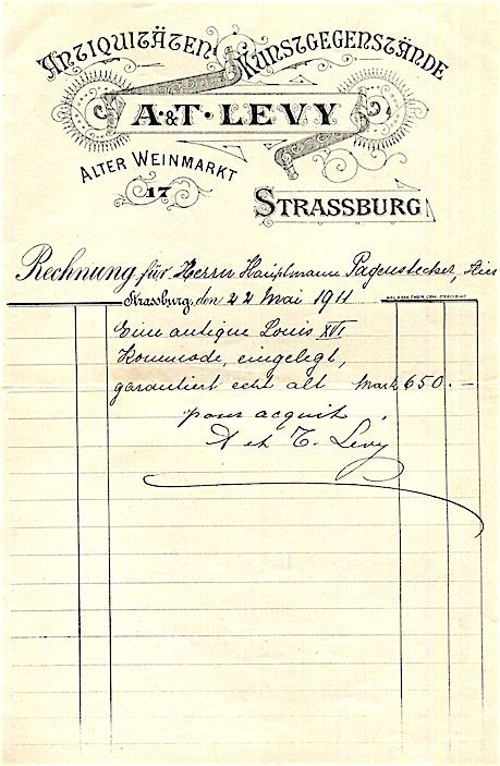 France Strasbourg Commerce A T Levy Receipt 1911 2