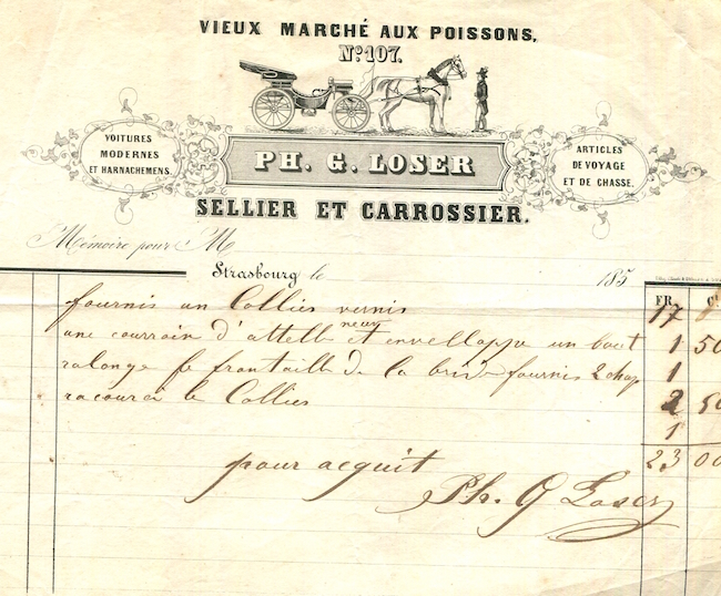 France Strasbourg Commerce G Loser Receipt Saddler Coach Builder 1850