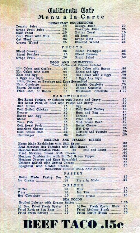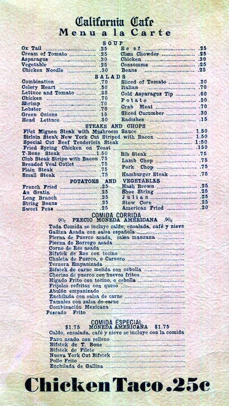Mexico Tijuana Restaurant California Cafe Menu 1940 Back