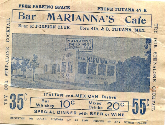 Mexico Tijuana Restaurant Mariannas Cafe Leaflet 1936 Front