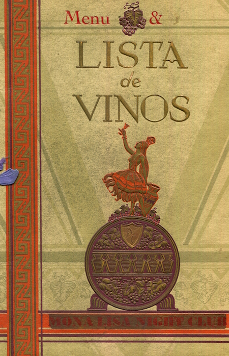 Mexico Tijuana Restaurant Mona Lisa Menu 1939 Front