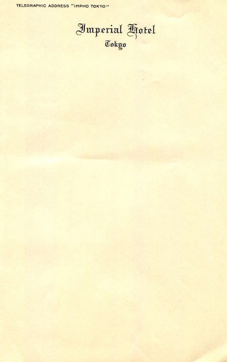 Japan Tokyo Stationery Imperial Hotel Frank Lloyd Wright Architect 1920