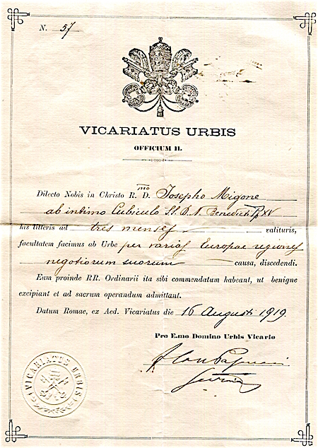 Italy Vatican Passport 1840 Front