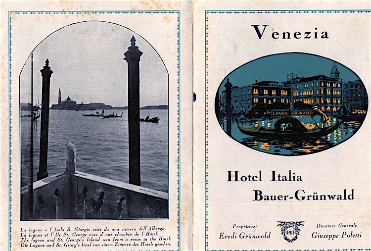 Italy Venice Hotel Bauer Grünwald Brochure 1933 Front