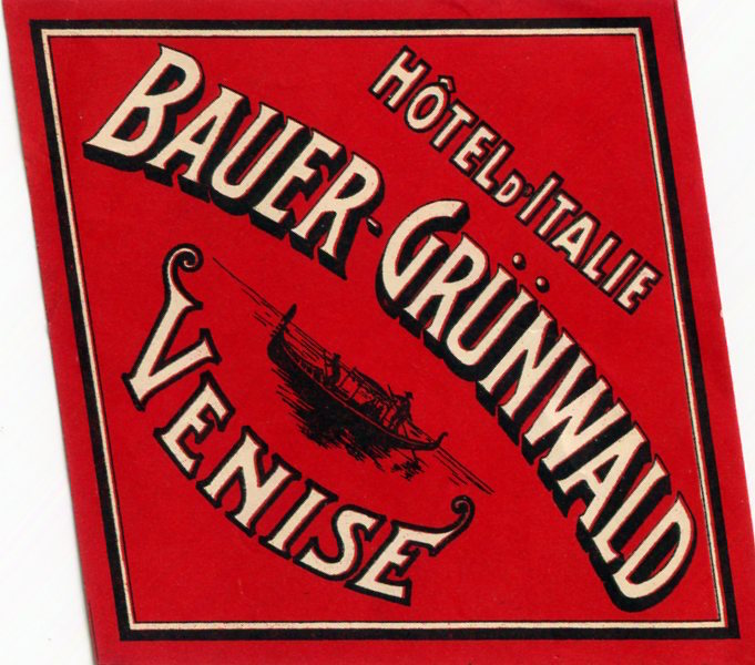 Italy Venice Hotel Bauer Grünwald Luggage Label 1926