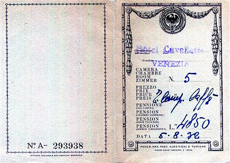 Italy Venice Hotel Cavalletta Room Card 1932