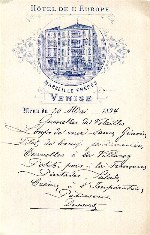 Italy Venice Hotel De L Europe Menu 1894