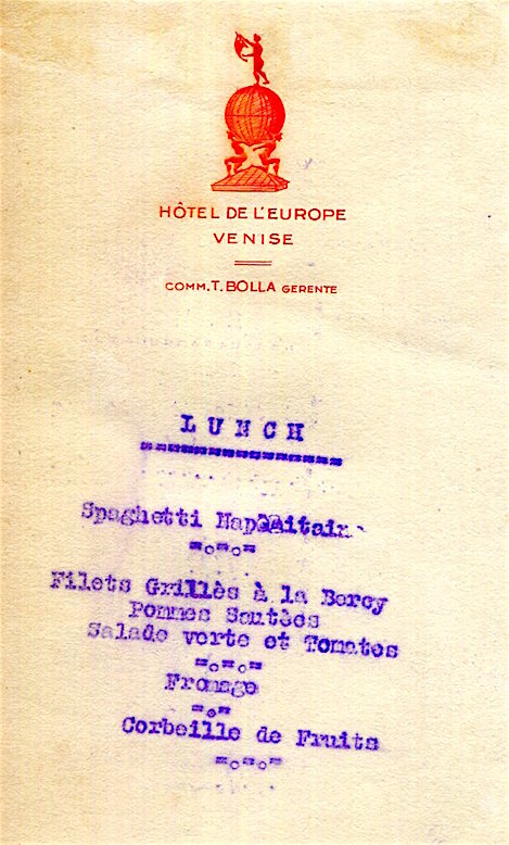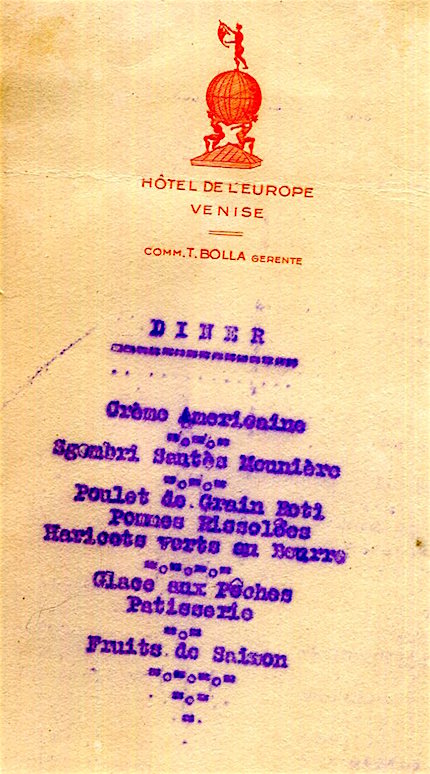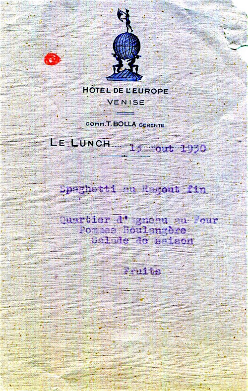 Italy Venice Hotel De L Europe Menu 1935-2