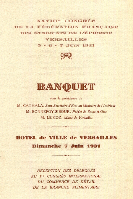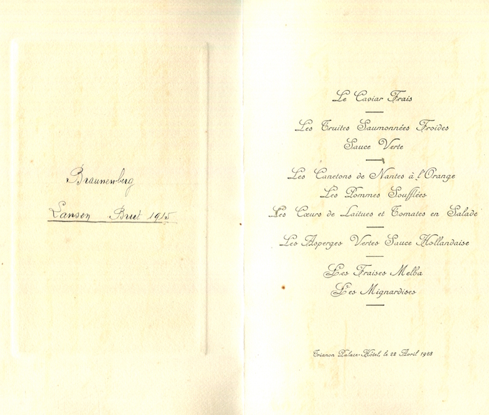 France Versailles Hotel Trianon Palace Menu 1928 Inside