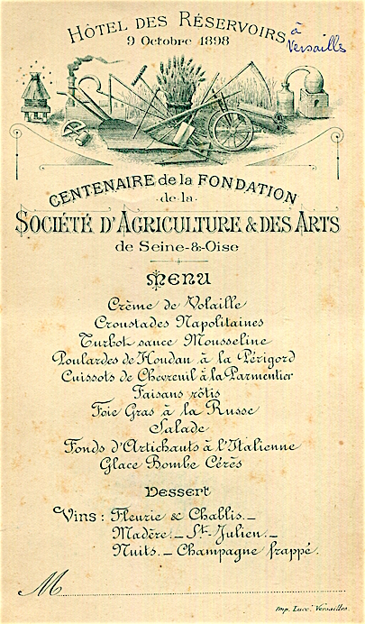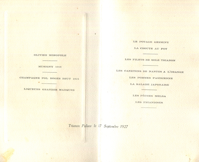 France Versailles Hotel Trianon Palace Menu 1927 Front