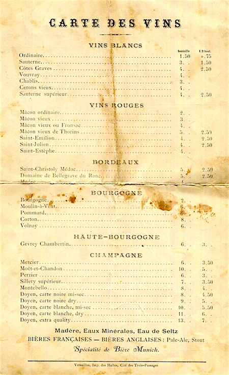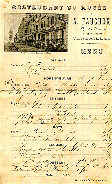 France Versailles Menu Restaurant Du Musee 1884 Back