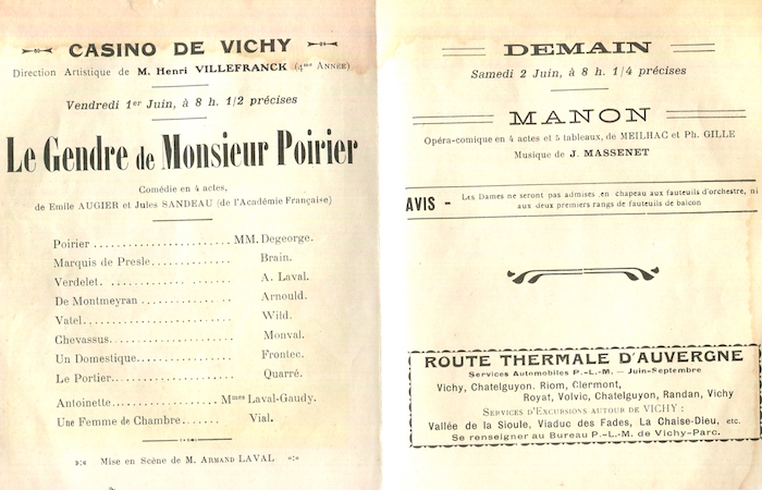 France Vichy Entertainment Casino De Vichy Program 1923 Front