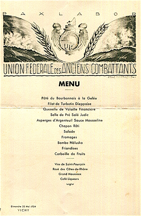 France Vichy Menu Anciens Combattants 1934