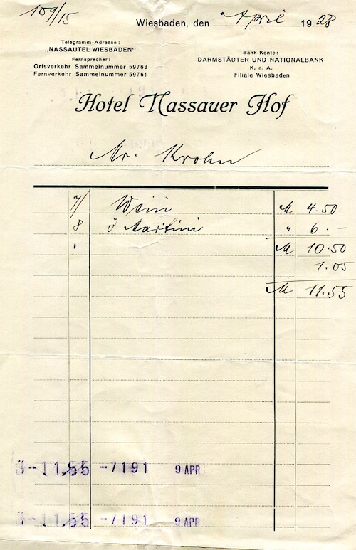 Germany Wiesbaden Hotel Nassauer Hof Receipt 1928