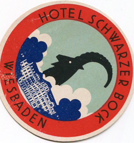 Germany Wiesbaden Hotel Schwarzer Bock Sticker 1936