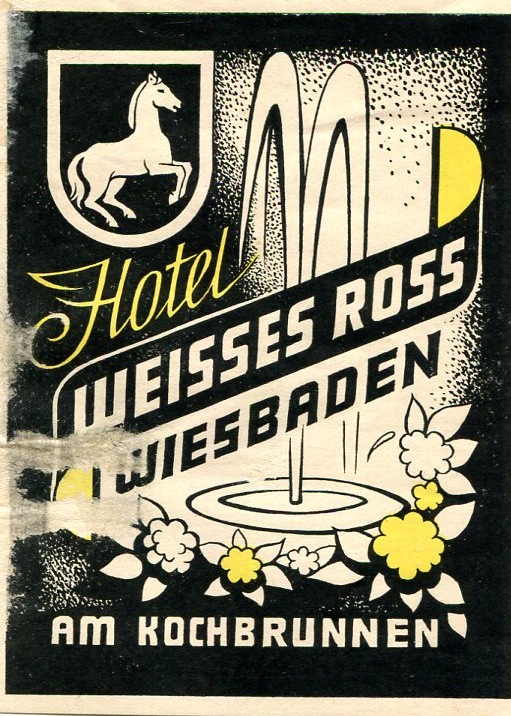 Germany Wiesbaden Hotel Weisses Ross Luggage Label 1936