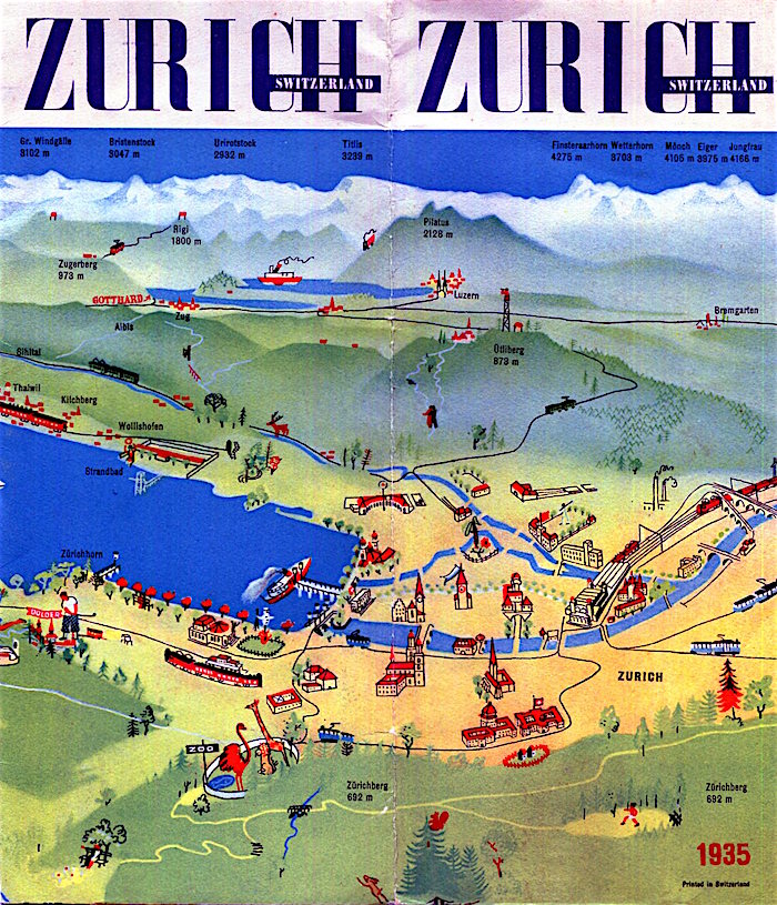 Switzerland Zurich Map 1935