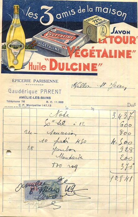 France Amelie Les Bains Commerce Gauderique Parent Receipt 1929