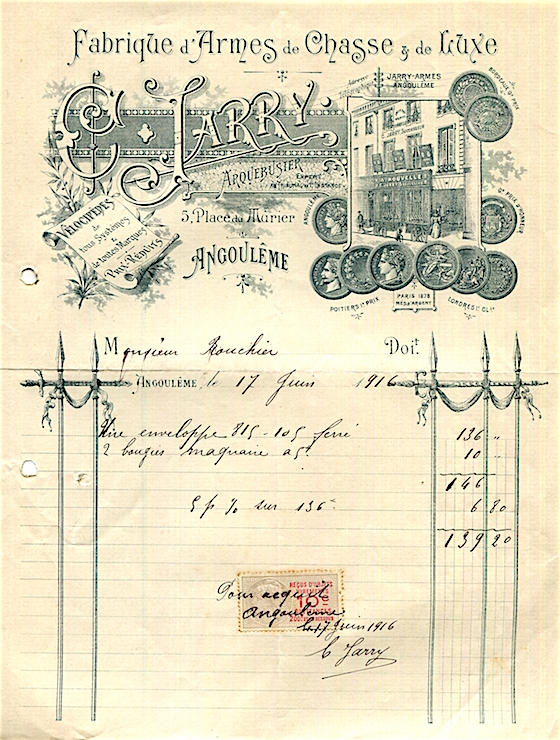France Angouleme Commerce Jarry Receipt Luxury Sporting Firearms 1916