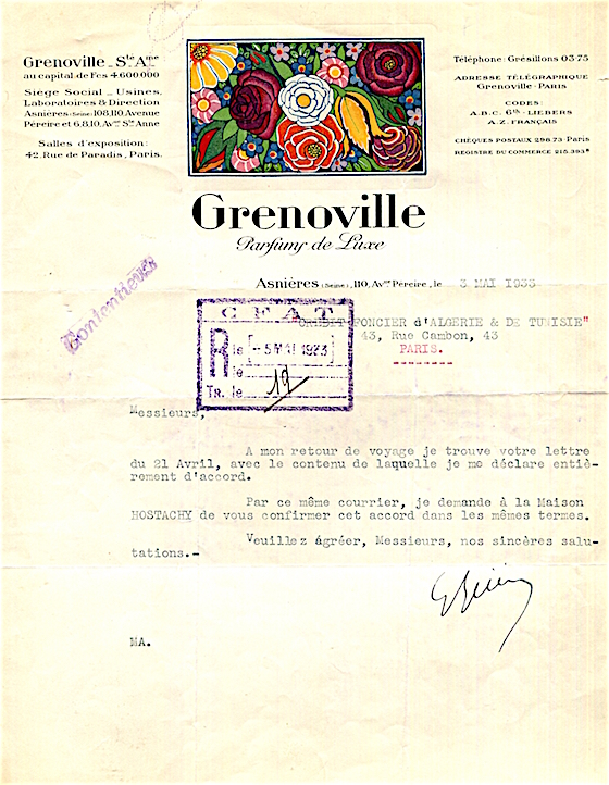 France Asnieres Commerce Grenoville Letter Perfumes 1933