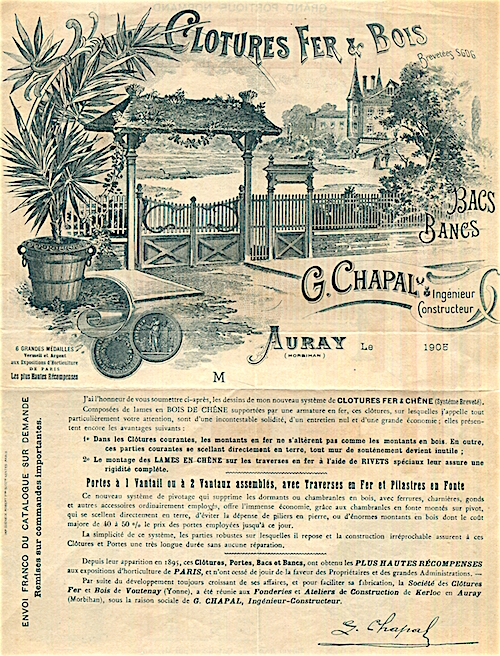 France Auray Commerce G Chapel Leaflet Iron Wood Fencing 1905