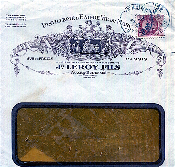 France Auxey Duresses Commerce Jh Leroy Fils Envelope Brandy 1942