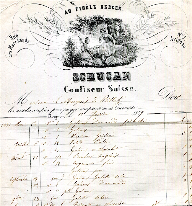 France Avignon Commerce Schucan Receipt Swiss Confectioner 1859
