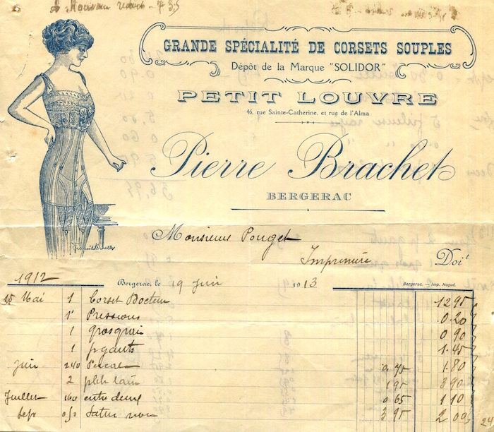 France Bergerac Commerce Petit Louvre Receipt Corsets 1913