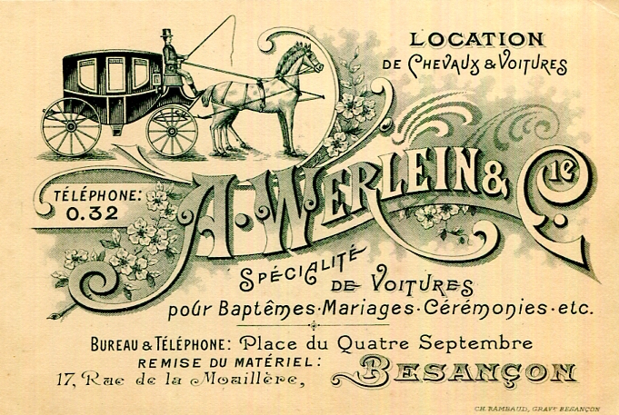 France Besancon Commerce A Werlein Cie Business Card Carriage Rental 1890