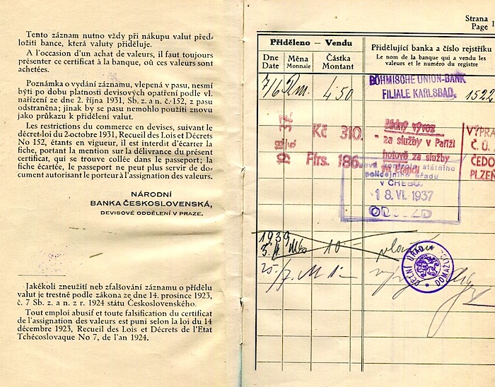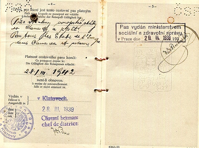Czechoslovakia Passport 1939 Inside 2