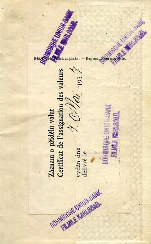Czechoslovakia Passport Overprint Bohemia And Moravia 1937 Inside 2