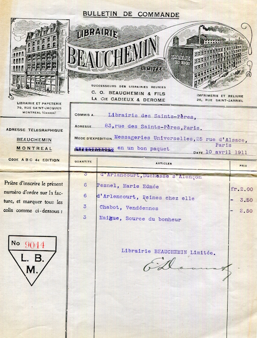 Canada Montreal Commerce Receipt Beauchemin Books Paper Supplies 1911