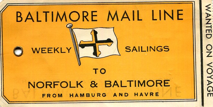 USA Baggage Tag Transport Steamships Baltimore Mail Line City Of Norfolk 1932 Front