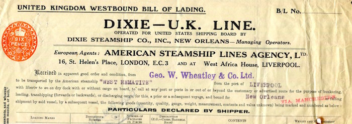 USA Bill Head Transport Steamships Dixie UK Line 1930