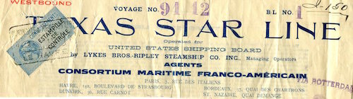 USA Bill Head Transport Steamships Texas Star Line 1930