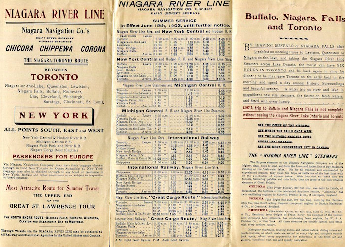 USA Brochure Transport Steamers Niagara River Line Niagara Falls 1903 Front