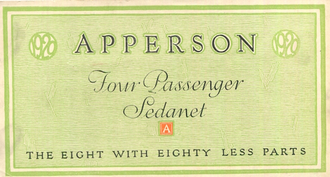 USA Brochure Transport Auto Apperson Four Passenger 1920 Front