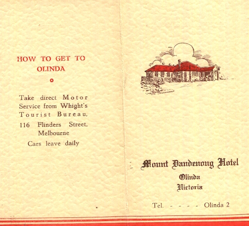 Australia Olinda Brochure Hotel Mount Dandenong 1938 Front