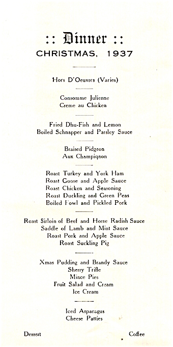 Australia Perth Menu Hotel Edward Christmas 1937 Inside