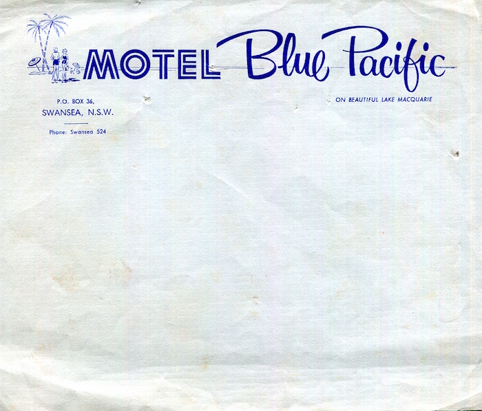 Australia Swansa Stationery Hotel Motel Blue Pacific 1937