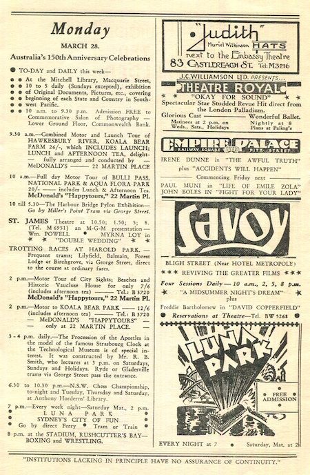 Australia Sydney Brochure Hotel The Australia Weekly Events 1938 Inside 2