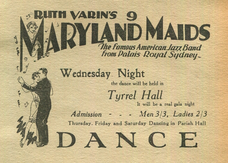Australia Sydney Entertainment Advertisement Card Tyrrel Hall Maryland Maids 1927
