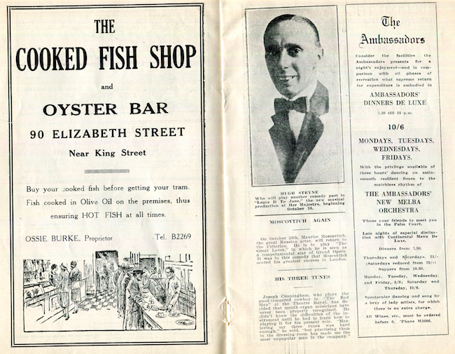 Australia Sydney Menu Entertainment Palais Royal 1927