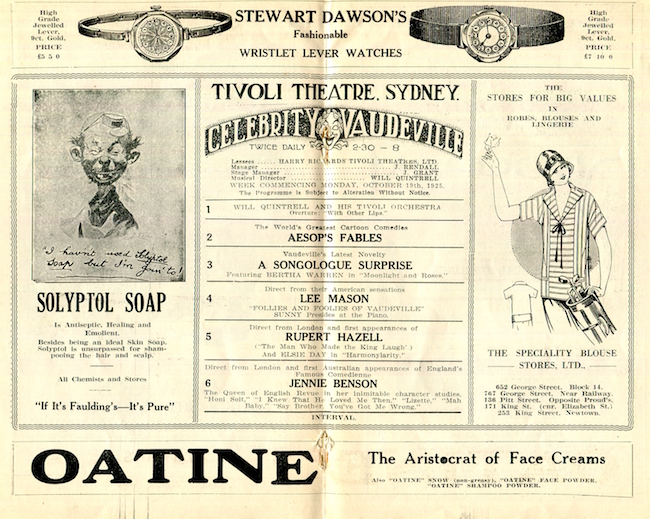 Australia Sydney Entertainment Program Tivoli Theater 1925 Front