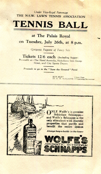 Australia Sydney Leaflet Entertainment Palais Royal Tennis Ball 1927