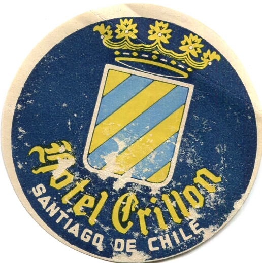 Chile Satiago Luggage Label Hotel Crillon 1938