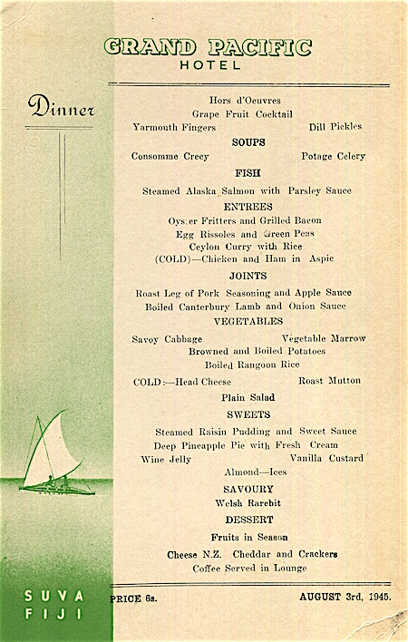 Fiji Suva Grand Pacific Hotel Menu 1945 1
