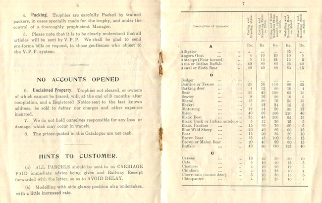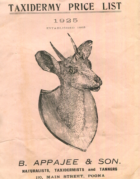 India Commerce Poona B Appajee Son Taxidermy Price List 1925 Inside