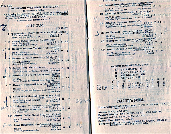 India Bombay Entertainment Bombay Races Program 1930 Inside 2
